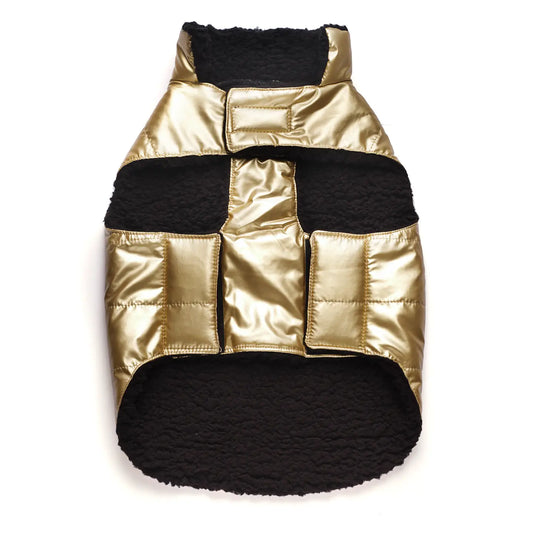 Gold Metallic Sherpa-Lined Pet Puffer Vest