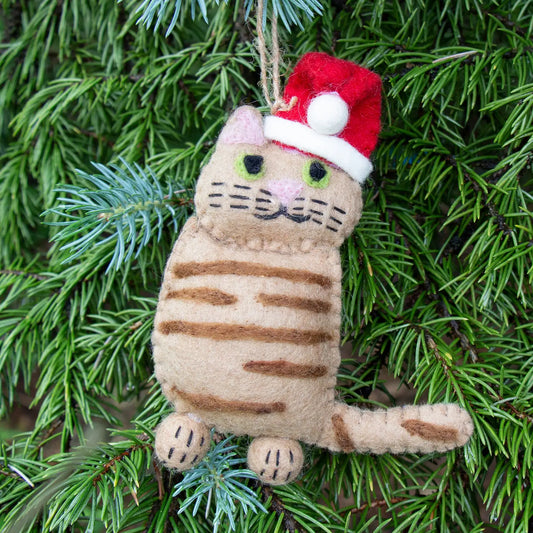 Hand-Felted Ginger Tabby Santa Cat Ornament