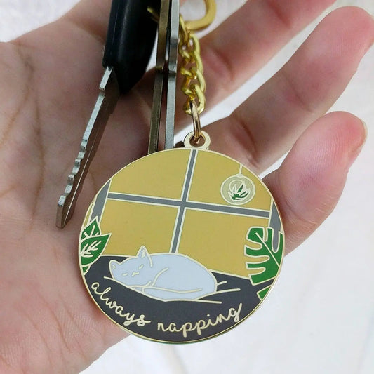 "Always Napping" Cat Nap Enamel Keychain