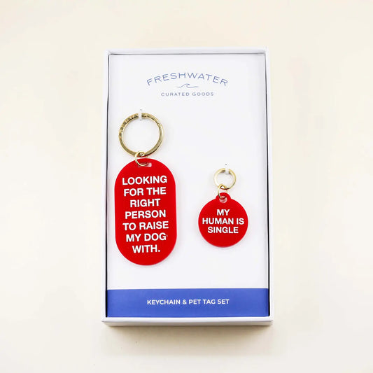 "My Human is Single" Keychain and Collar Tag Matching Set