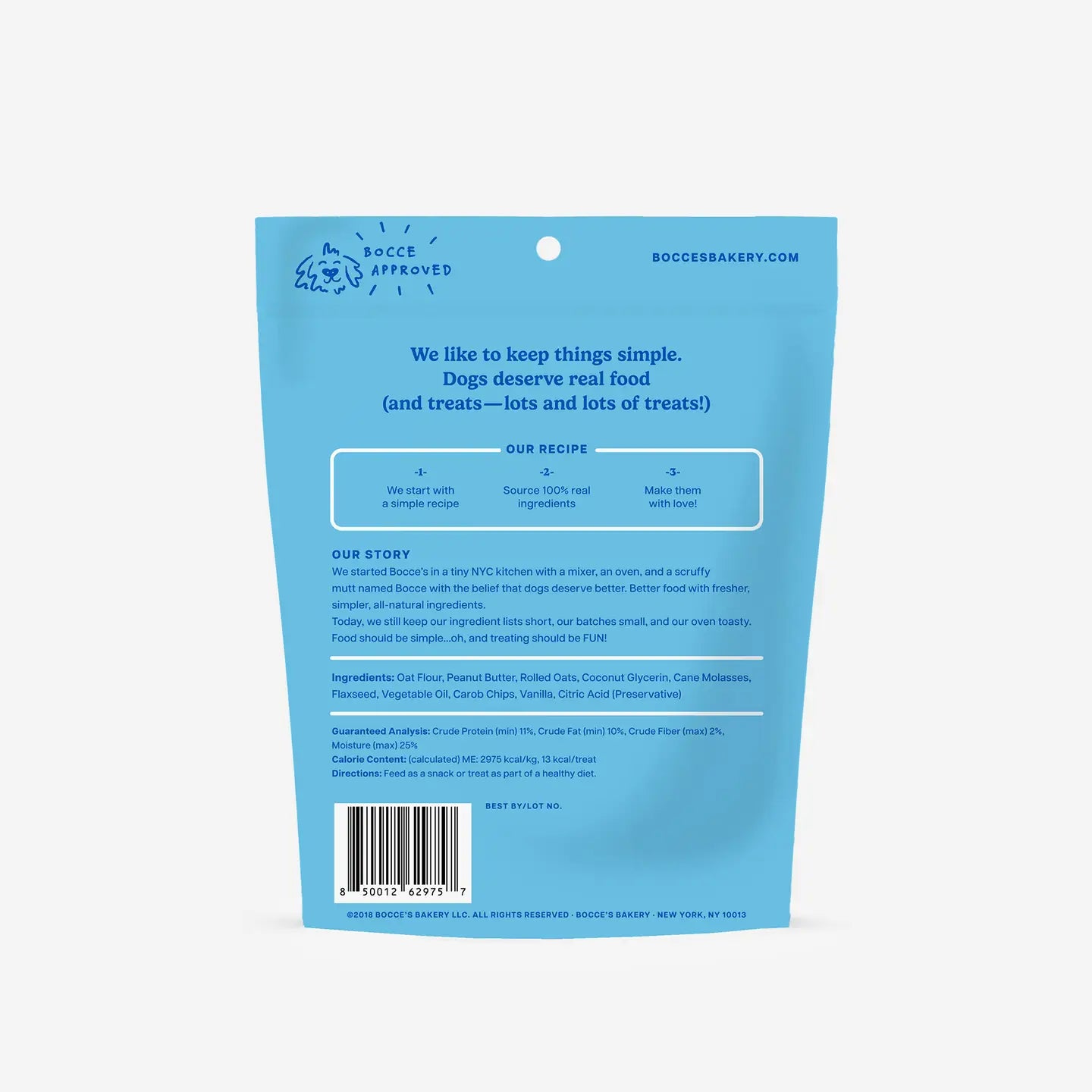 100% Real Ingredients (Just 10!) Ingredients: Oat Flour, Peanut Butter, Rolled Oats, Coconut Glycerin, Molasses, Flaxseed, Vegetable Oil, Carob Chips, Vanilla, Citric Acid (Preservative). Wheat-Free.