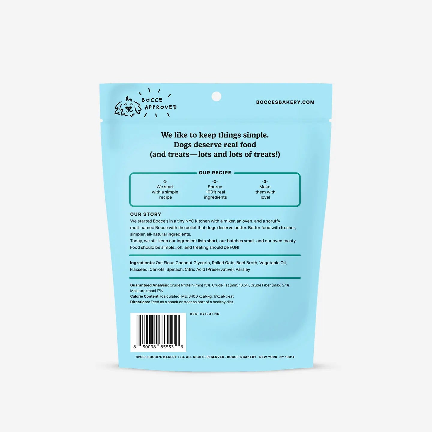 Bocce's baked a spooky batch of soft and chewy treats so no trick-or-treater goes empty paw’d this Halloween! Made for your pup with beef broth, carrots and spinach.