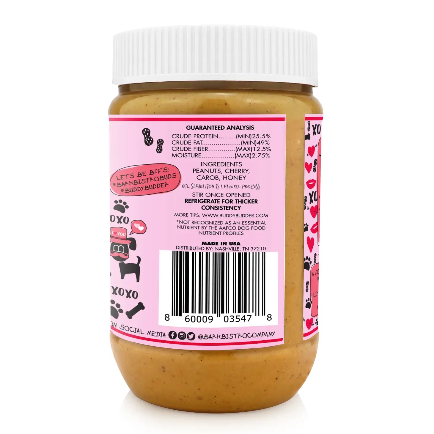 Smooch Pooch Buddy Butter is made from cherries, carob (a dog-safe chocolate alternative), honey, and unsalted peanuts. 4 simple ingredients, that's all!