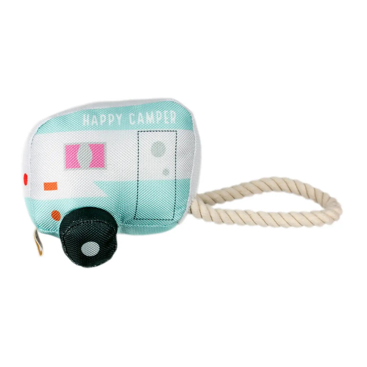 Heading out on a mobile camping trip? Don't forget this fun toy for your furry adventure buddy! Great for tug and fetch, this toy also features durable fabric and a squeaky squeaker--dogs are sure to love it!