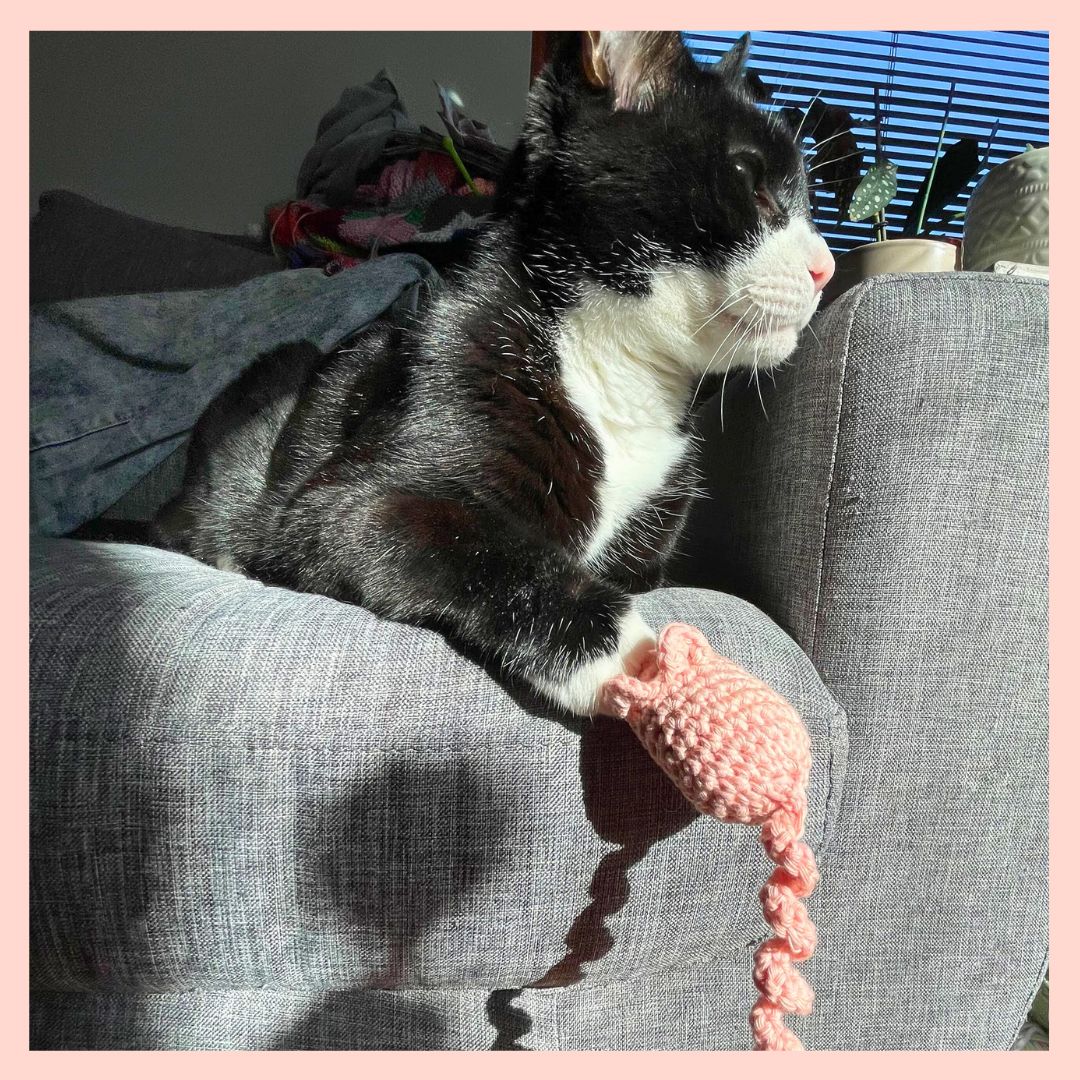 Catnip toys are a great way to add stimulation and relieve boredom for indoor cats. Cats love to bat and chase these adorable curly-tailed mice, adding enrichment and exercise to their daily lives! These sweet handmade toys also make a great gift for kitty pawrents.