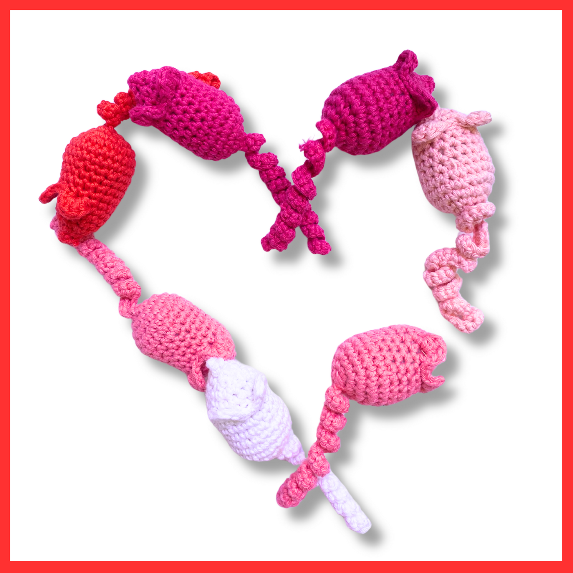 Hand-Crocheted Mouse Catnip Cat Toy (Valentine's Colors)