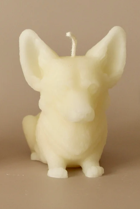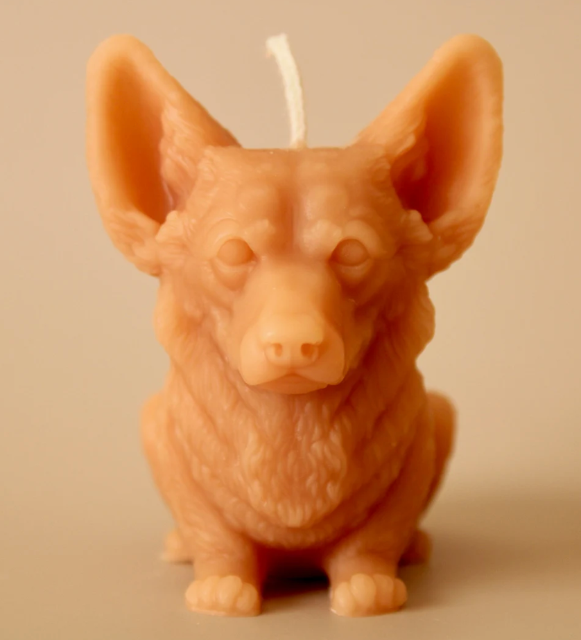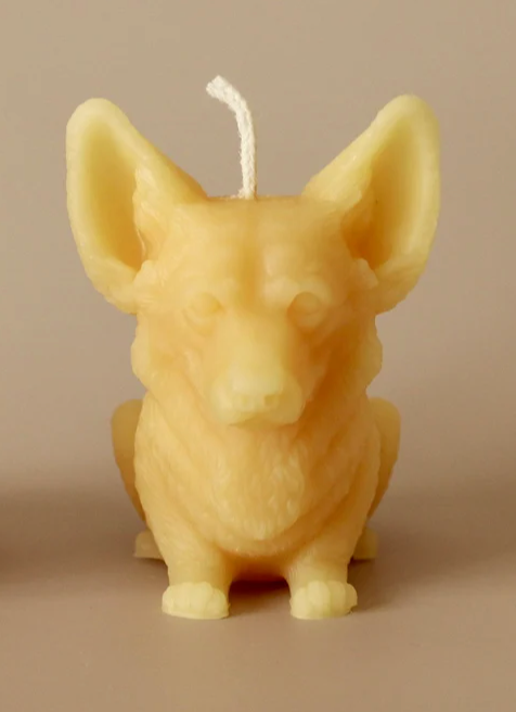 Cute corgi candle: unscented, hand-poured soy and beeswax candle by Wicksburgh, local to Pittsburgh.