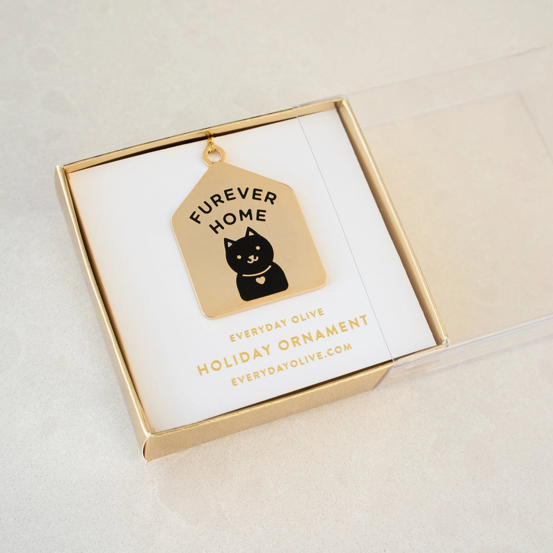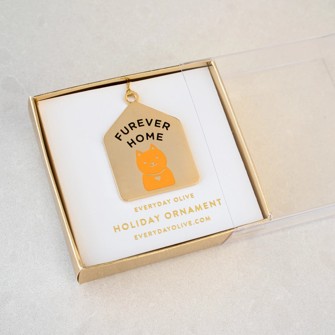 Details: Designed exclusively for everyday olive. 0.92" X 2.10 hard enamel ornament on gold twine. Stamped brass plated with gold metal. Packaged in a giftable gold box.