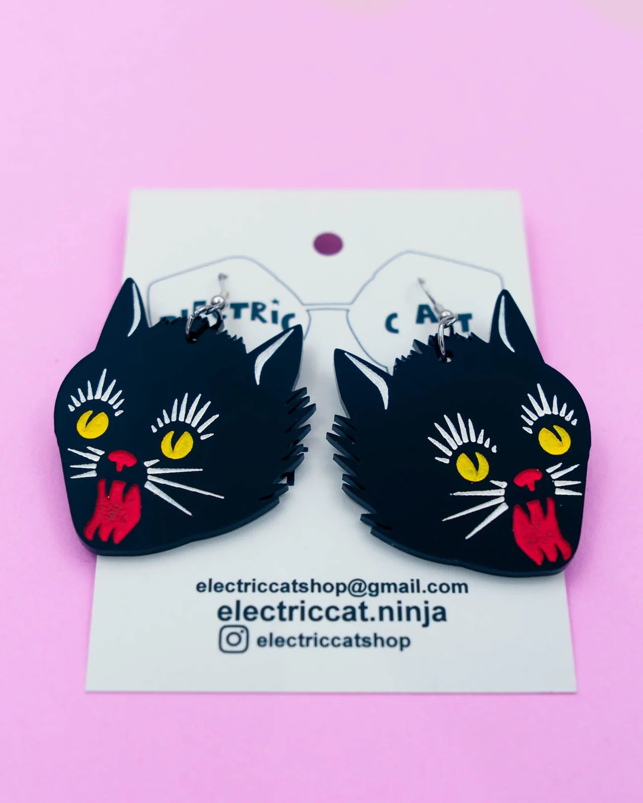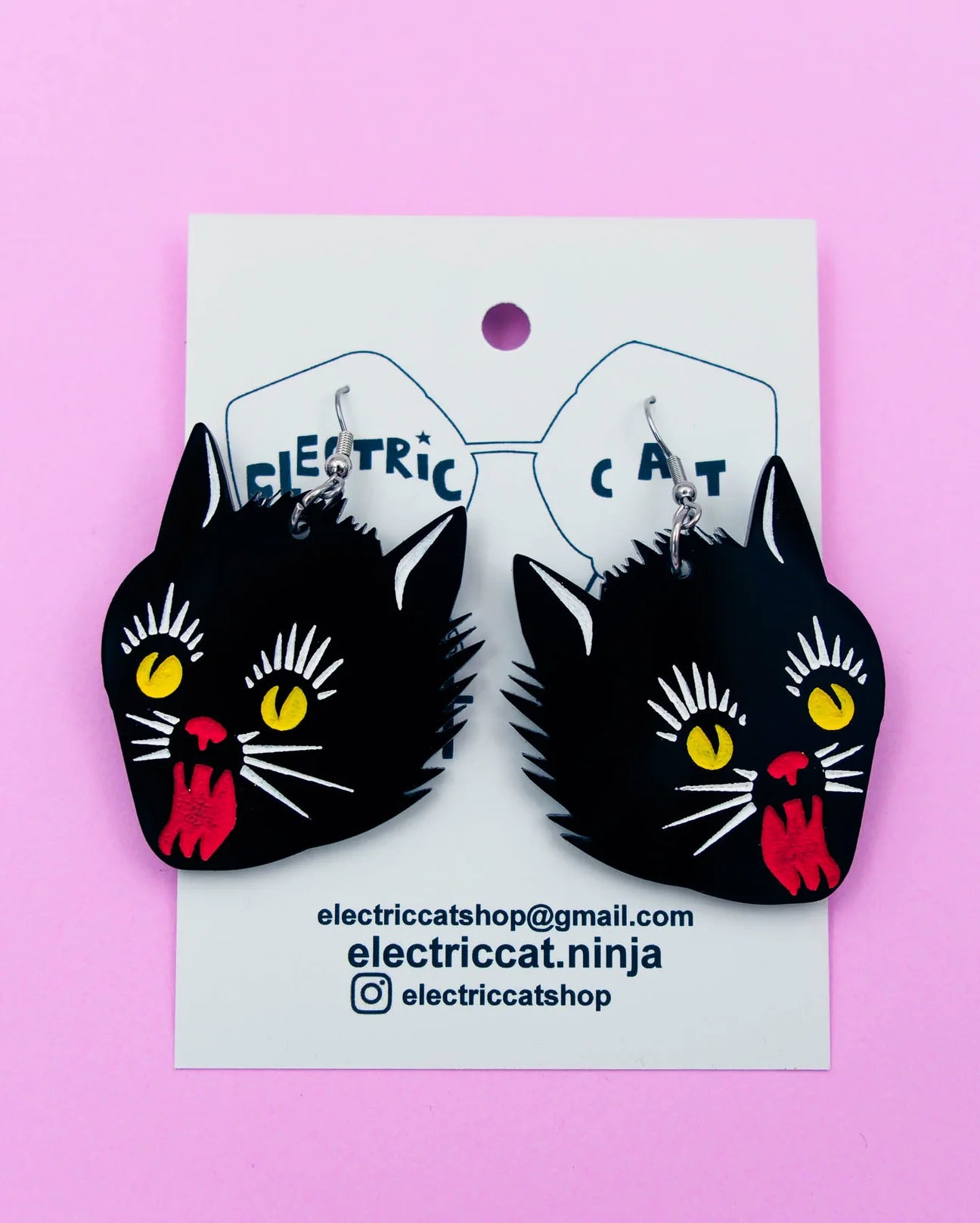 Vintage cats, but in a feral way. Acrylic statement earrings by Electric Cat.