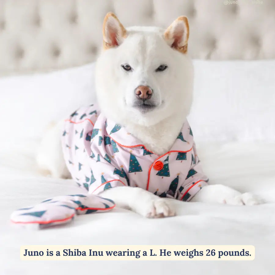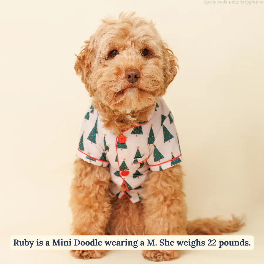 Oh, Christmas tree how cozy can you be?! Ring in the holiday season in our Oh, Christmas Tree Holiday Dog Pajamas! These Holiday Dog Pajamas are super-cozy, super cute, and festively fun with a classic notch collar, pearlized snap buttons, and a tiny pocket for treats, these PJs feature a matching eye pillow for people (or pups)! The perfect PJ for the the Holiday Season!
