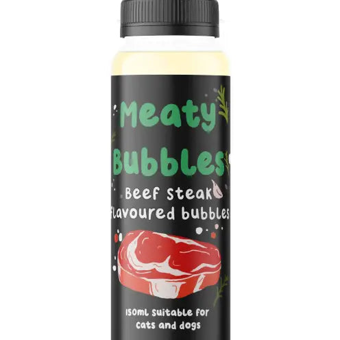 Meaty Bubbles: Edible Bubbles for Pets! Beef Steak Flavor