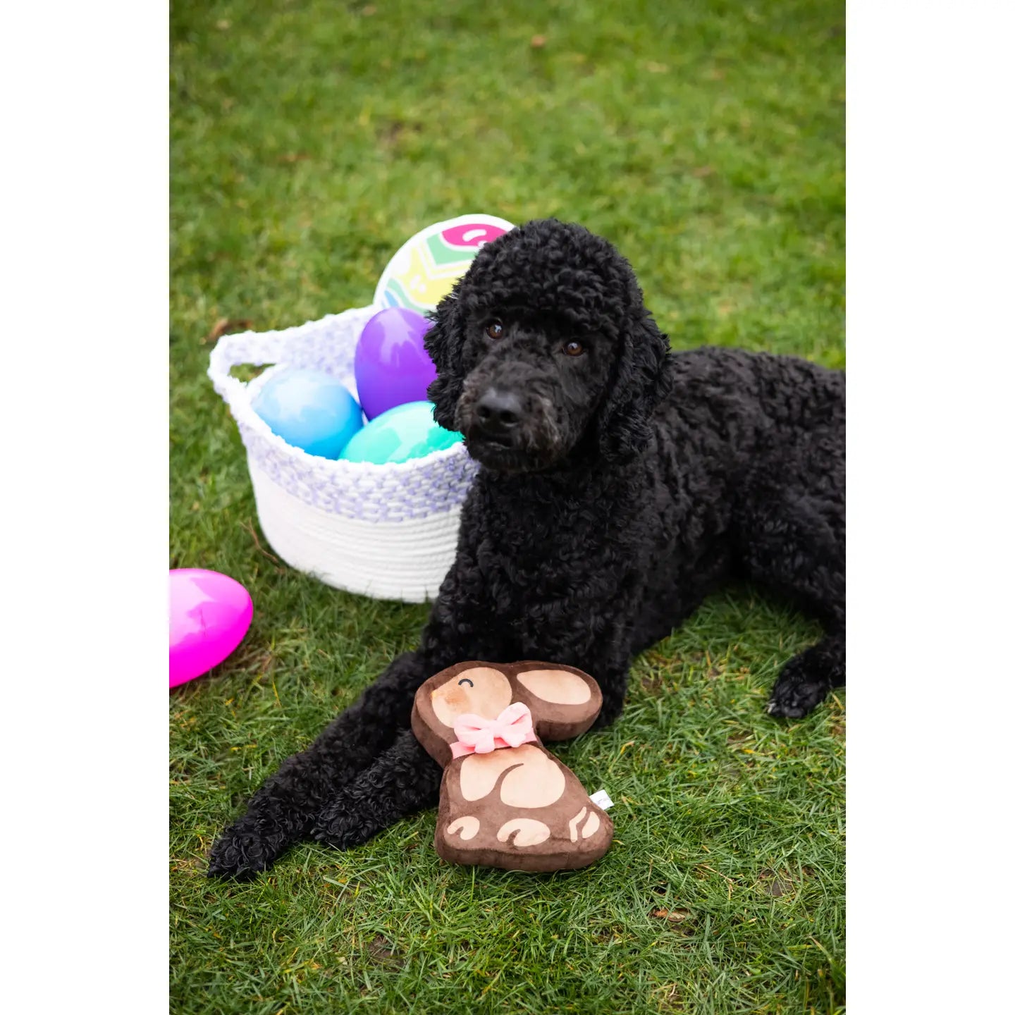 Show your dog some extra love on Easter Day with this adorable chocolate bunny plush and squeaker toy by Pearhead!
