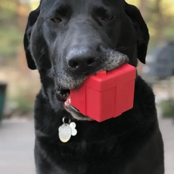 DISPENSES TREATS: Help your dog fight boredom by filling the Gift Box with treats like kibble, canned dog food, peanut butter, or your favorite dog treat recipe. Best results: mix wet/dry foods. Freeze with treats inside to prolong use.