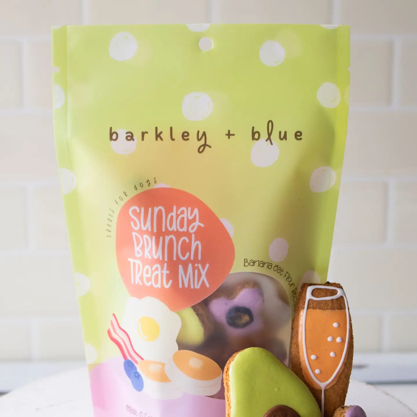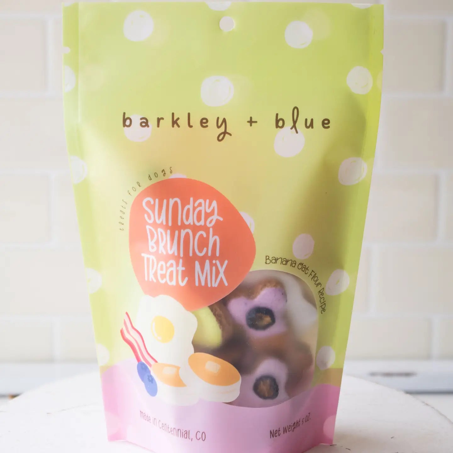 Elevate your pup's Sunday mornings with Barkley and Blue's Sunday Brunch Treat Mix. Or bring them with you to your next patio brunch so your dog has something to munch on, too!