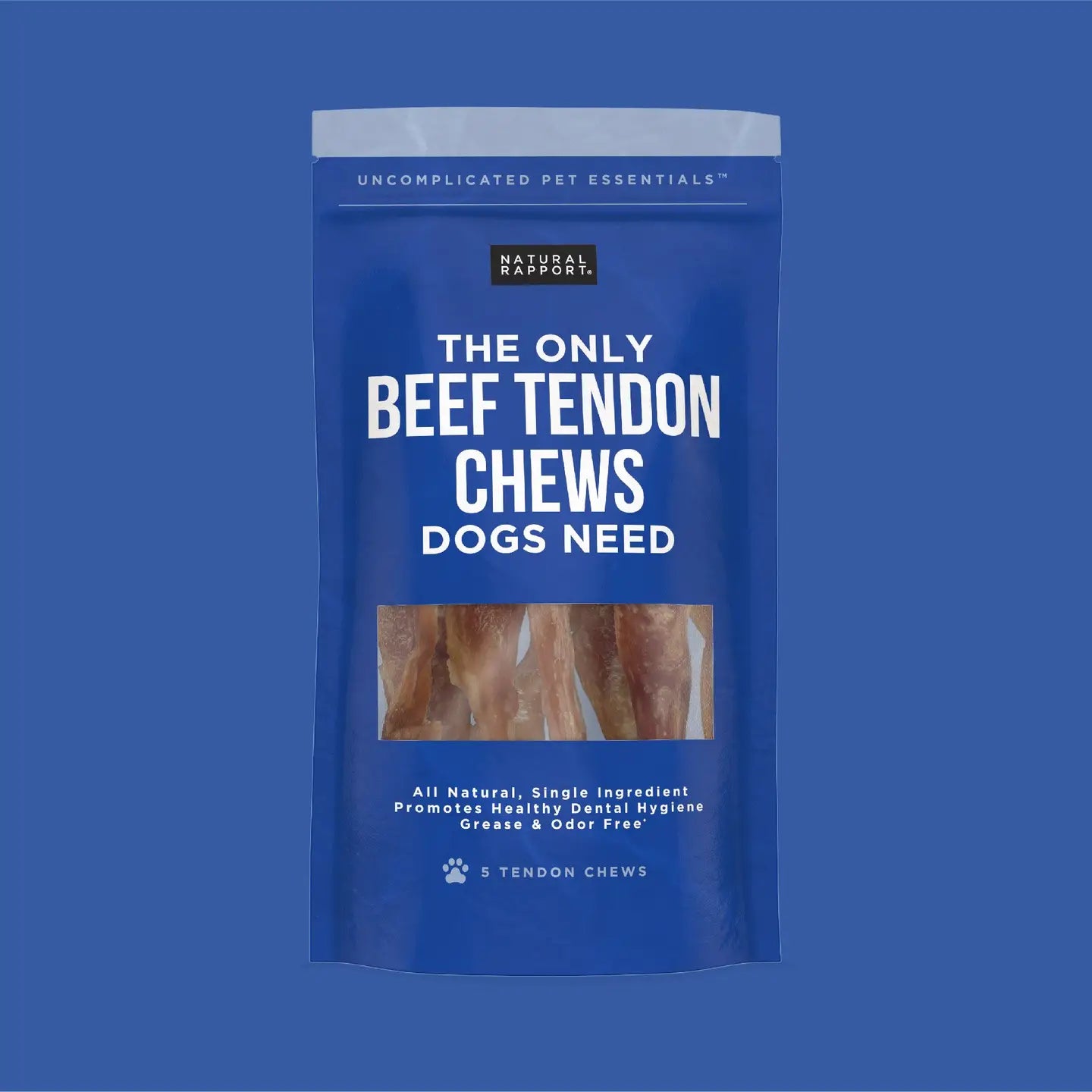 If Natural Rapport's Achilles’ heel is providing the best pet essentials at a reasonable price, these Beef Tendon Chews follow suit. We didn’t just throw any old tendons in a bag to sell — we went the extra mile and made sure we were offering the best: 100% Natural, Sourced & Manufactured in the USA, No Chemicals, Fillers, Artificial anything, Hormones, Antibiotics, Byproducts, Dyes, Flavors or Preservatives. That’s all great, but what truly makes our Beef Tendon Chews different is this: we perfectly slow roast beef tendons at their peak nutritional moment making them the perfect chew to provide long-lasting, fully digestible, lean protein for your pup. Beef tendons are known to support dental health in dogs, and are also known to be a superlative nutritional source of glucosamine, chondroitin & elastin.