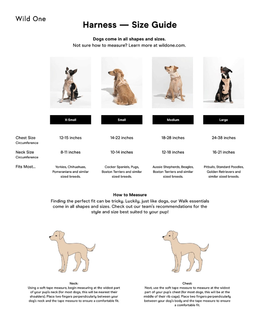 Size Guide: XS: Neck = 8"-11", Chest = 12"-15" S: Neck = 10"-14", Chest = 14"-22" M: Neck = 12"-18", Chest = 18"-28" L: Neck = 16"-21", Chest = 24"-38"