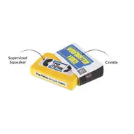 Rewind the fun memories with P.L.A.Y.’s 90s Classics Woofbuster Video toy - the VHS tape that’s a cinematic treat your furry friend will love! This detachable tape features a super-sized squeaker to capture your pup's attention and excitement. The sleeve is crafted from crinkle fabric, adding to the sensory experience. Watch your pup fetch and play with this Woofbuster Video, where every moment is a blockbuster hit in the canine cinema! Don't forget the pupcorn!